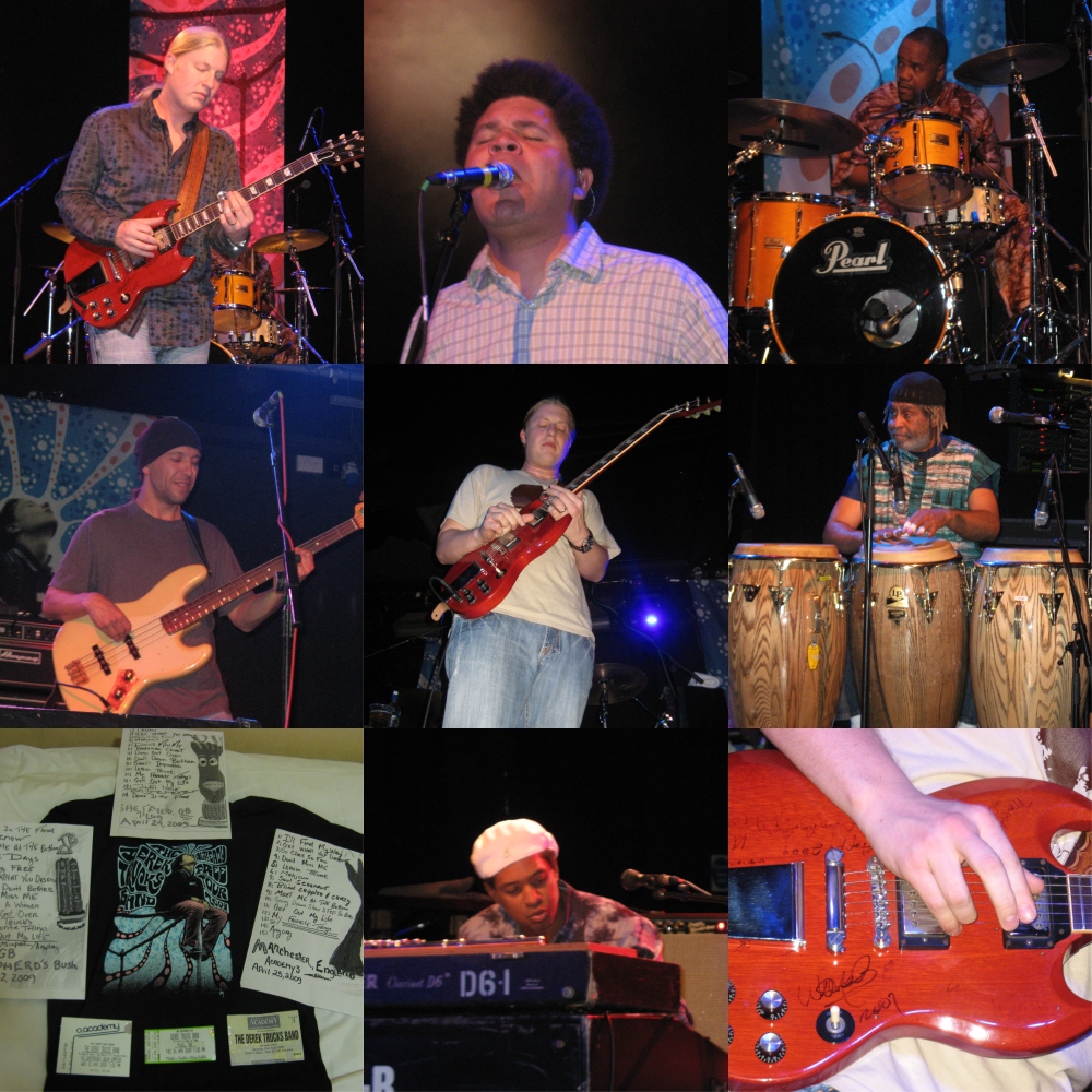גיחת הופעות שאני כ”כ שמח כיום שיצא לי לחוות, התרחשה באפריל 2009. האמת שזו גם הייתה מחוויות הלייב היותר טובות שיצא לי לראות. לתפוס את ההרכב של ה-Derek Trucks Band בשלוש הופעות, במקומות קטנים, ולעמוד סנטימטרים מול דרק טראקס למשך ערב שלם ולבהות בקסם הזה.